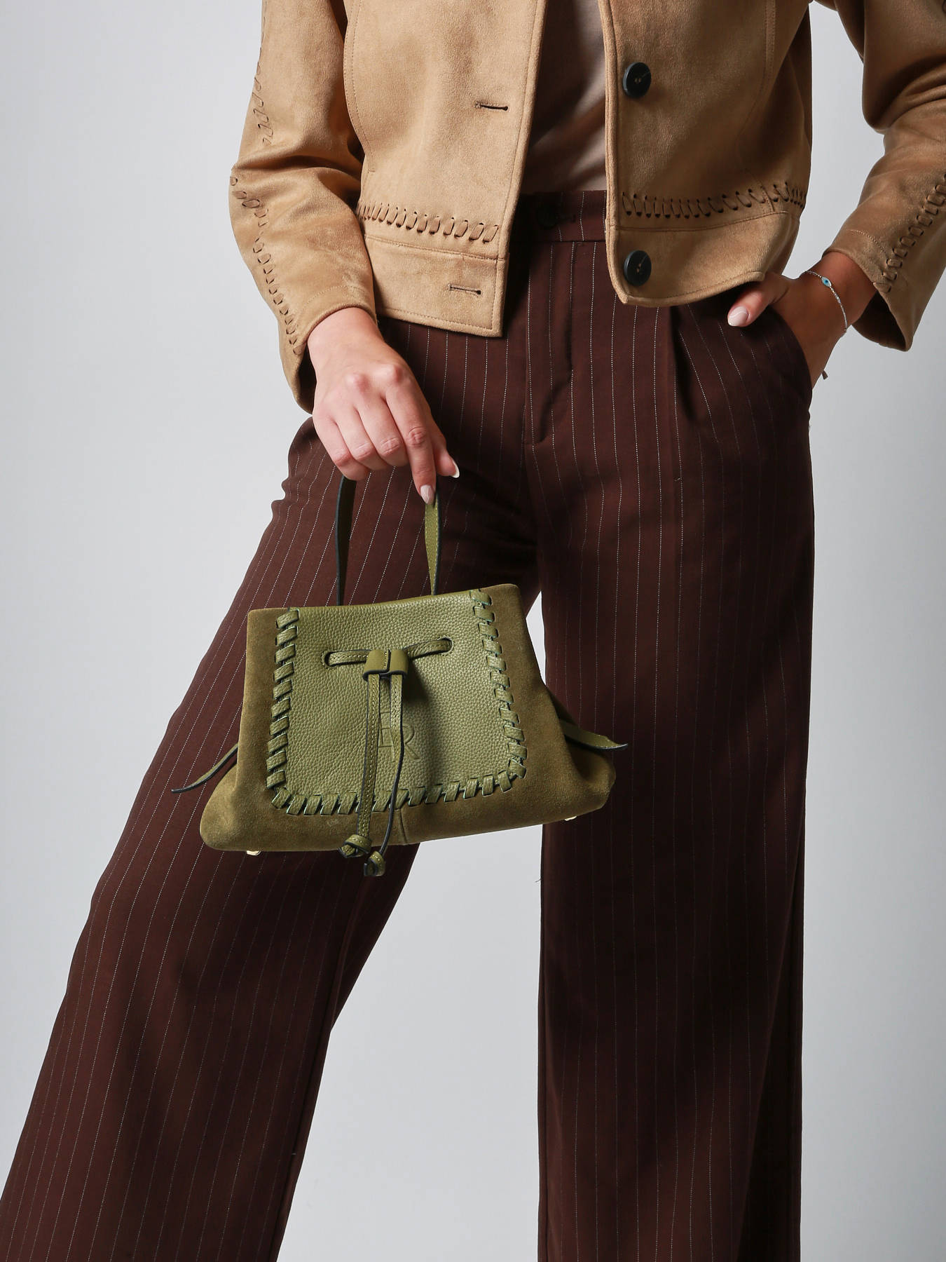 Le sac bandoulière format S de la ligne BRUMBY par ETRIER allie charme et modernité grâce à sa conception bi-matière en cuir lisse et cuir velours. Son tressage délicat apporte une touche subtile d’élégance. Compact et fonctionnel, ce modèle se porte aussi bien à la main qu’en bandoulière grâce à sa bandoulière amovible incluse. Sa fermeture zippée assure la sécurité de vos essentiels. Un sac raffiné et pratique, idéal pour un style soigné au quotidien.