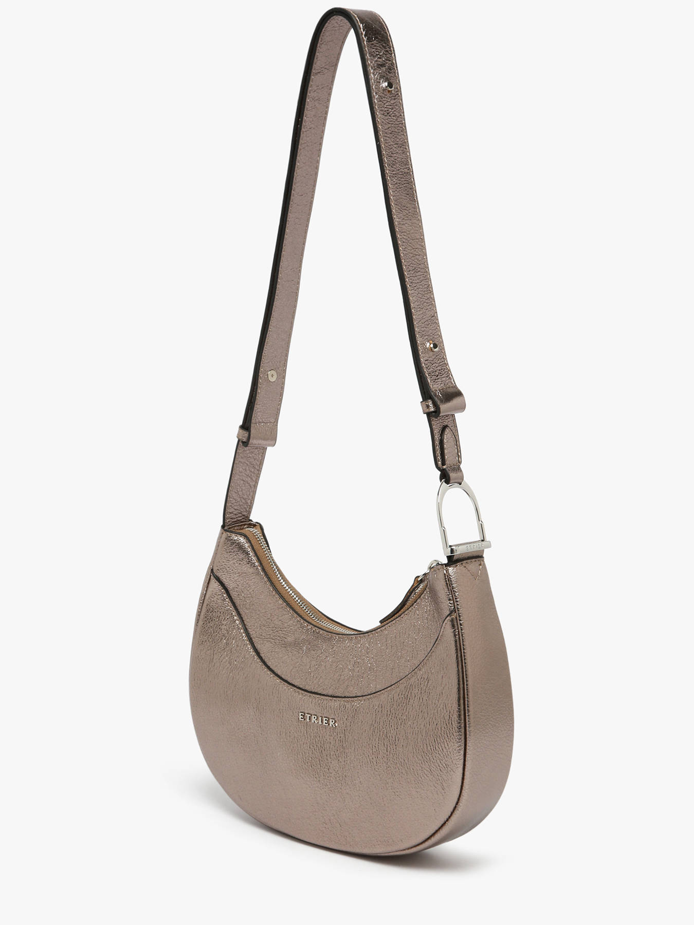 Le sac porté épaule ETRIER de la ligne JOLLY est conçu en cuir de vachette irisé, qui apporte une élégance lumineuse à ce modèle au style audacieux. Sa fermeture zippée garantit la sécurité de vos effets personnels, tandis que la poche extérieure au dos offre un accès rapide et pratique à vos essentiels. La bandoulière réglable permet un porté confortable à l’épaule, idéal pour un usage quotidien. À l’intérieur, un compartiment principal est complété par une poche simple et une poche zippée, facilitant l’organisation. La ligne Jolly s’inspire de l’esprit « Highlander Cowboy », mêlant allure sauvage et raffinement moderne. Le détail du logo Etrier sur la bandoulière ajoute une touche finale élégante et distinctive à ce sac parfait pour affirmer un style unique en hiver.